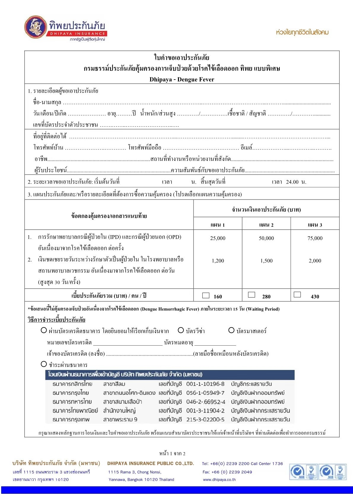 ประกันไข้เลือดออก ทิพยประกันภัย